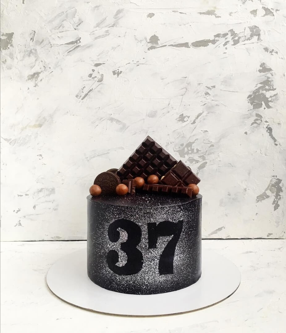 Минимум декора дает большой полет фантазии для устного или письменного поздравления имениннику, которое пойдет вместе с вручением этого сладкого десерта